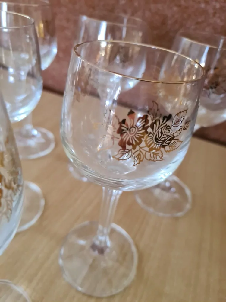 - Sklenice na víno, 6x, zlaté zdobení, cena za vše