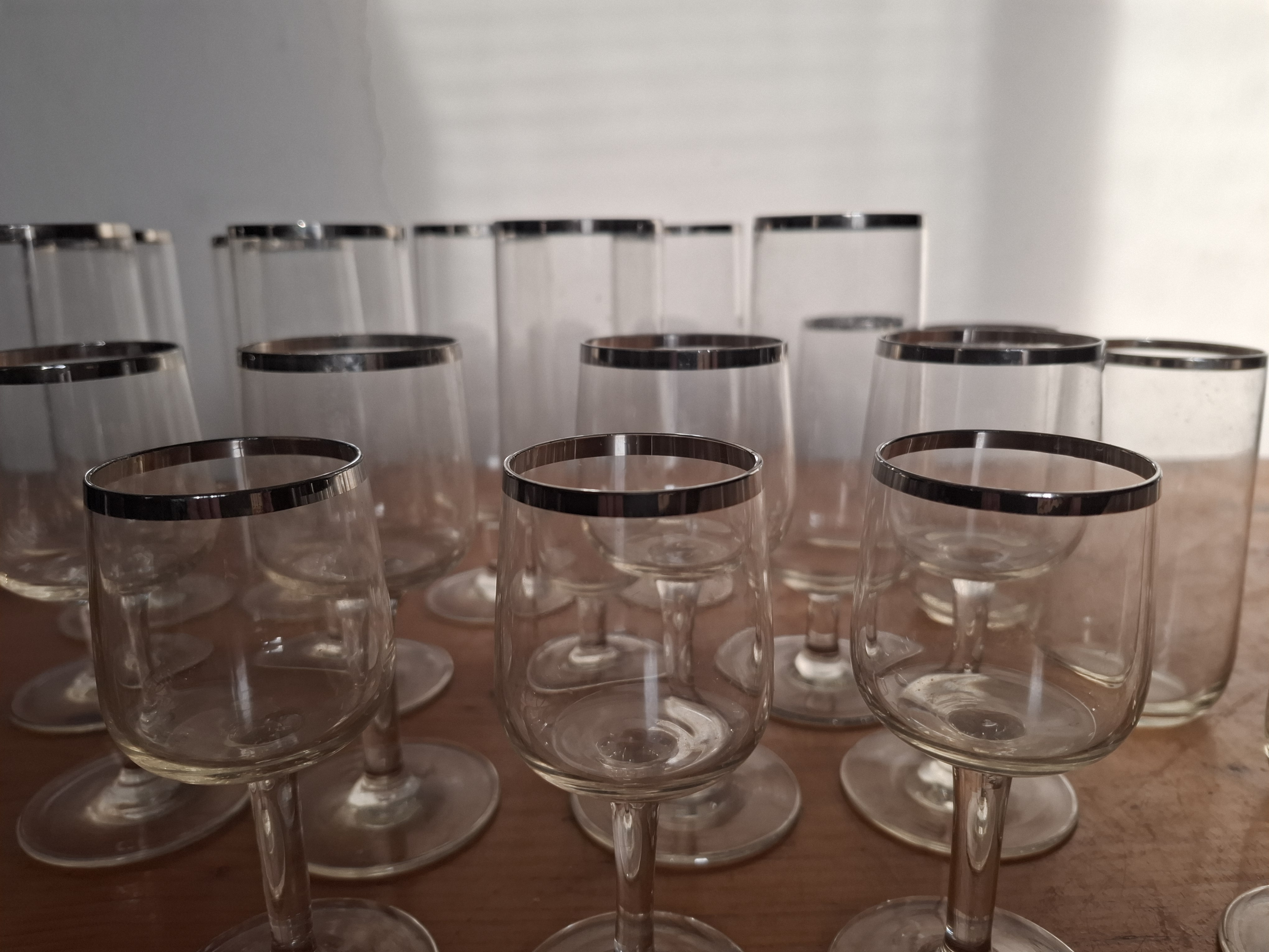 Sklenice, sada 26ks, stříbrná linka, cena za vše