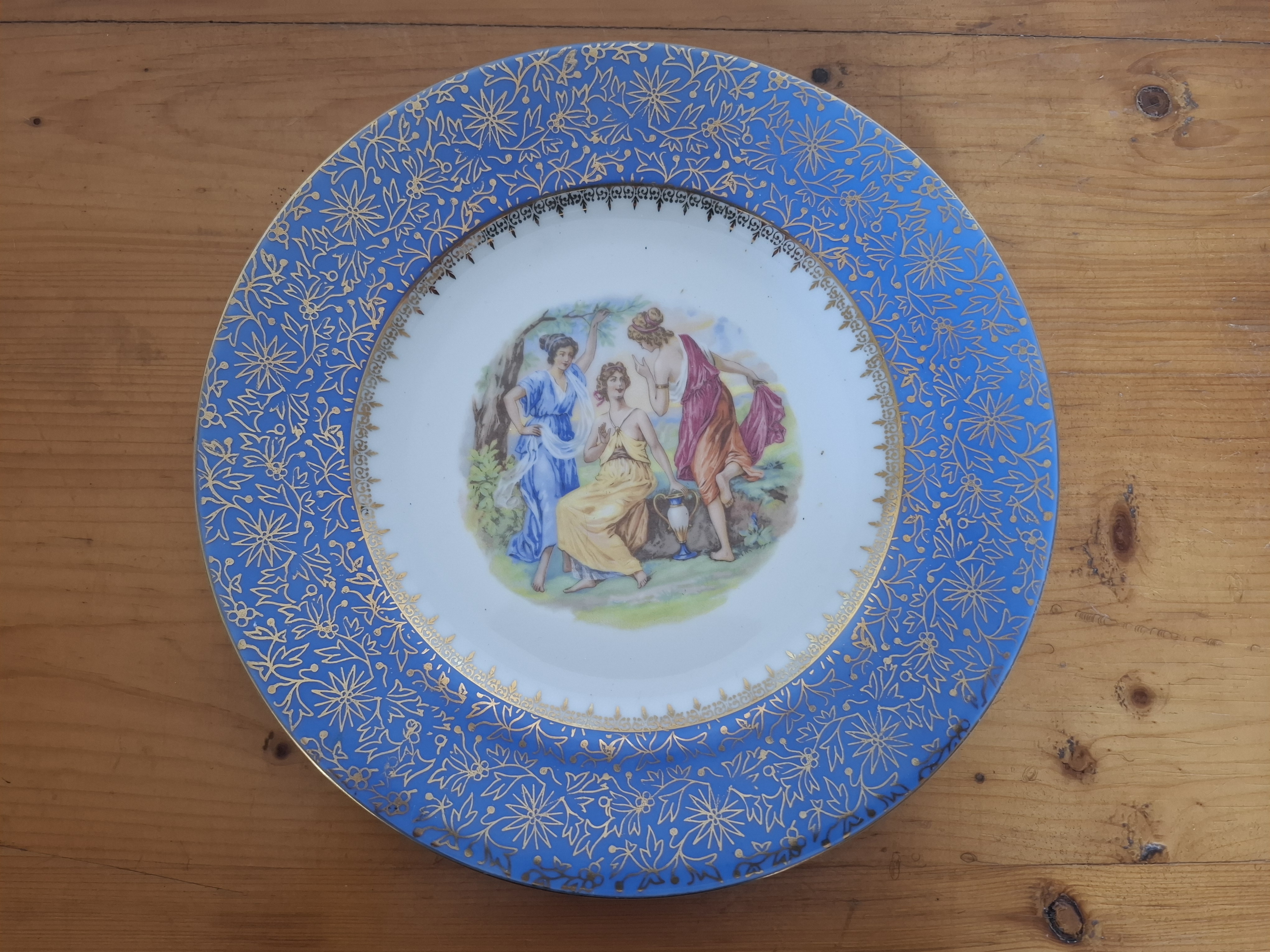 Talíř Tři Grácie, krásný modrý okraj, Pirken Hammer